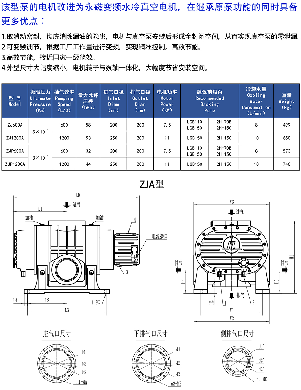 ZJA.ZJPA永磁真空電機(jī)羅茨真空泵 / ZJ600A,ZJ1200A,ZJP600A,ZJP1200A